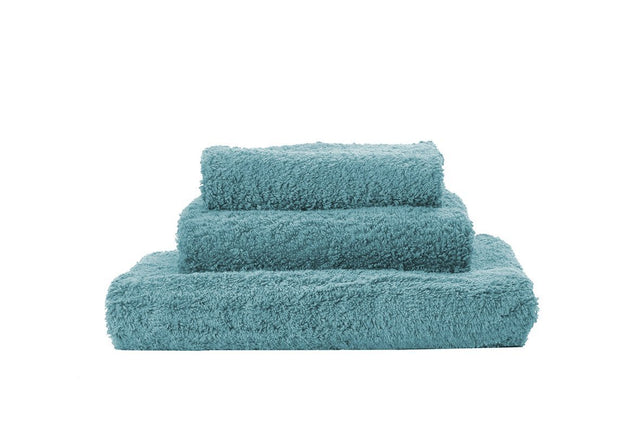 Super Pile Dragonfly is Abyss and Habidecor Color 325. These light teal bath towels are plush, absorbent and durable. The bath linens are available in so many towel sizes. 2 sizes of luxurious double tub mats in matching color.