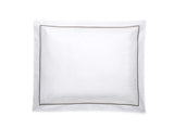 Essex brings two smart lines of satin stitch embroidery to our Sierra sheeting, in long-staple cotton percale. With tonal colors and crisp design, Essex adds a smart look to any bedroom. Fitted Sheets are Sierra and may be added to your cart here.