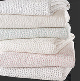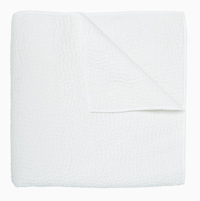 Hand Stitched White Quilted Coverlets by John Robshaw. When I'm in Jaipur, I like to stop by my embroidery workshop to watch the women patiently hand stitch these blankets. I love the way they vary the stitches slightly, giving them the look of small checks made in pencil. This particular technique of hand stitching lets you feel only the super fine cotton voile against your skin, and not the stitching. This is the secret to the softness and airiness of these blankets, which are a perfect layer for summer sleeping. And they only get better with every wash.