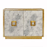 Winslow Antique Mirror & Gold Leaf Cabinet by Worlds Away. This luxurious 2 door cabinet features an antique mirror surface and gold leaf detailing. It is spacious and offers ample storage space–the cabinet has one interior shelf. Perfect for the entryway, living room or dining room.
