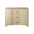 Plymouth Natural Grasscloth Drawer Chest by Worlds Away is an instant classic. The 3 drawer chest is crafted from sturdy wood and finished in neutral natural grasscloth. It is accented with modern acrylic and brass cylinder hardware. The generously sized drawers offer plenty of storage space.