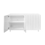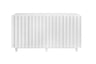 This Odette White Cabinet by Worlds Away is a chic, modern and sophisticated piece that is both functional and stylish. It features a unique scalloped design on the front and has four cabinet doors that open to reveal a spacious interior. The 4-door cabinet includes 2 adjustable/removable shelves and cut-out media wire management. It has elegant tapered legs and a glossy white lacquer finish.