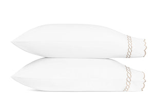Enliven your bedroom with the refined, stylish sophistication of Matouk's Chain Scallop Dune Bedding! These 600 thread count Milano Percale linens boast a perfectly balanced scallop edge and intricate, gorgeous embroidery. Make your bedroom a sanctuary with this luxurious Egyptian cotton percale duvet, shams, sheets, and pillowcases. Drift away to dreamland in exquisite style with Matouk!