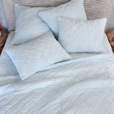 Hand Stitched Light Indigo Quilted Coverlets by John Robshaw