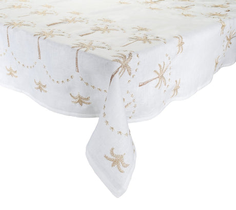 Embroidered Palm Tablecloth in White Natural & Gold by Kim Seybert