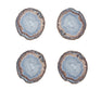 Strata Drink Coasters in Beige Taupe & Gray Set of 4 in Gift Box by Kim Seybert. The Strata Coasters were inspired by striking bands created by distinct layers of sedimentary rock found within the earth's crust. The organic shape of the Strata Coasters and free-flowing bands of gold mixed with blue-gray tones mimic the naturally occurring striations. These acrylic coasters are easy to wipe clean and feature a cork backing. Materials: 70% MDF, 20% Acrylic, 10% Cork