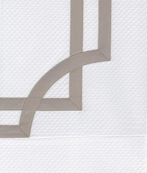This Corte Shower Curtain from Legacy Home's Arcadia Bath Collection features a classic appliqué fretwork tape design. The shower curtains is offered in White and Ivory Diamond Pique with over 50 sateen tape color options to choose from.