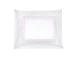 Liana Lavender Euro Sham by Matouk. Liana Bedding by Matouk features an embroidered three-layer honeycomb band on top-quality 520-thread-count Ceylon percale fabric. Collection includes duvet covers, sheets, shams and pillowcases. Bed linens are designed to coordinate with Terra duvets and shams. Liana is worthy of the master bedroom, but can be easily styled with more casual items.