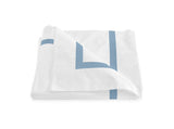 Lowell Hazy Blue Bedding by Matouk. Enjoy luxury comfort with the Lowell Hazy Blue Bedding by Matouk. Made with luxurious Milano percale, this bedding features a soft finish that's perfect for lounging. It's sure to be a cozy addition to any bedroom. Lowell is Matouk's iconic, best selling style. Elegant and modern in White with Hazy Blue Trim. Percale sheeting lavishly woven in Italy from the finest Egyptian cotton, finished with a distinctive 1-inch trim.