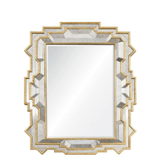 Southampton Gilded Gold Leaf & Antiqued Wall Mirror by Michael S. Smith for Mirror Home. This eclectic and superbly designed wall mirror is sure to be a unique and eye-catching accent in any space. A beveled center mirror is surrounded by hand cut antiqued mirrors. The stunning accent wall mirror also features gold accents which adds another dazzling layer to this beautiful mirror. Accent mirror can hang horizontally or vertically.