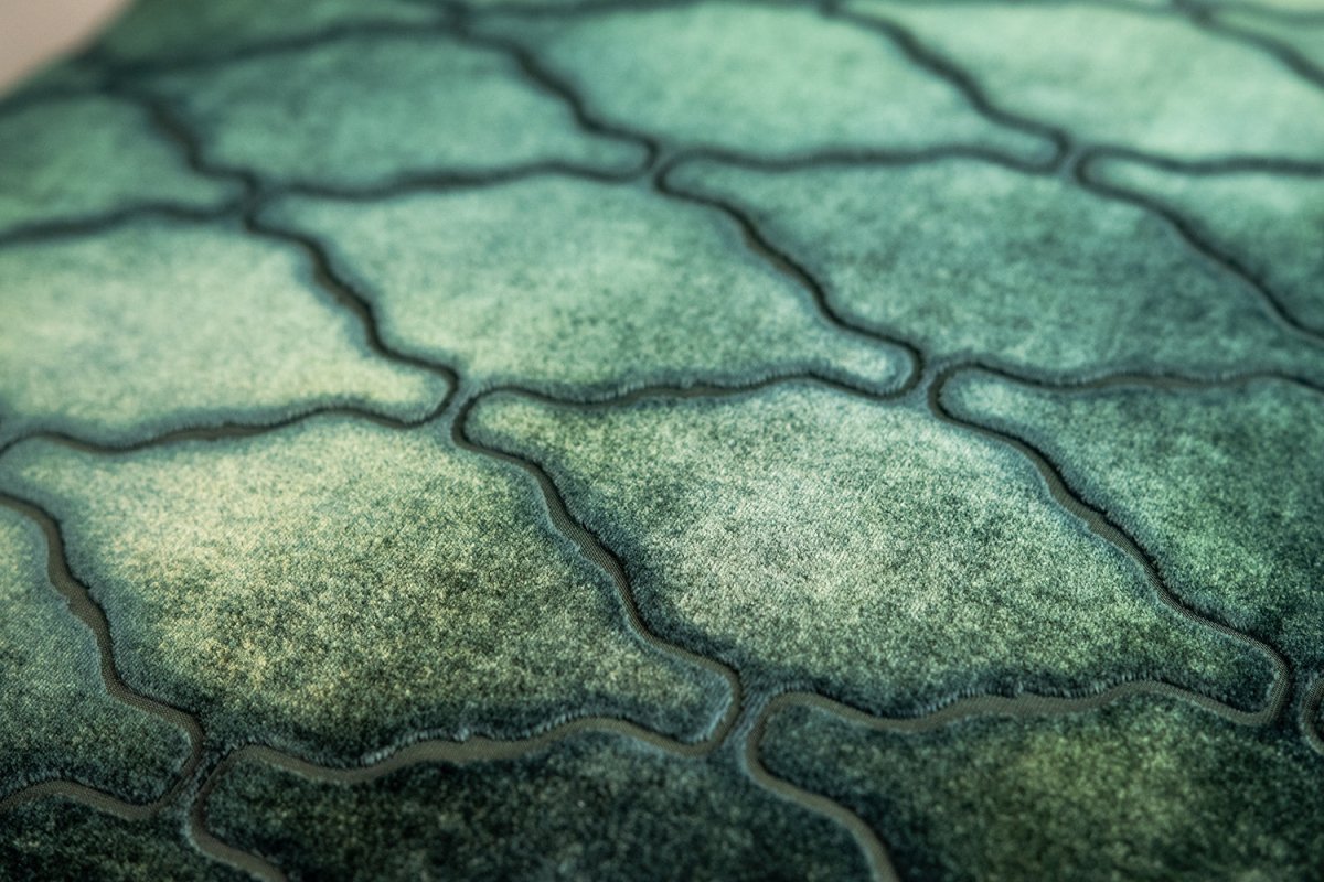 Kevin O'Brien Studio Arches Velvet Burnout Pillow in Evergreen. Slender arches in a repeating structure create a textured, Moroccan-inspired trellis. Gorgeous Velvet Pillows in several sizes with insert included. Artistic and special.