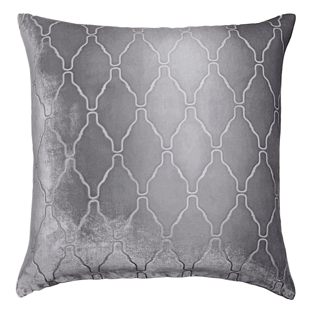 Kevin O'Brien Studio Arches Velvet Burnout Pillow in Silver. Slender arches in a repeating structure create a textured, Moroccan-inspired trellis. Gorgeous Velvet Pillows in several sizes with insert included. Artistic and special.