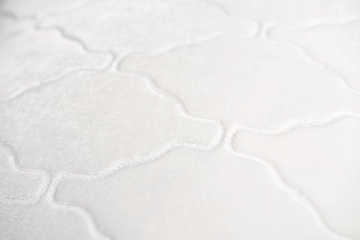 Kevin O'Brien Studio Arches Velvet Burnout Pillow in White. Slender arches in a repeating structure create a textured, Moroccan-inspired trellis. Gorgeous Velvet Pillows in several sizes with insert included. Artistic and special.