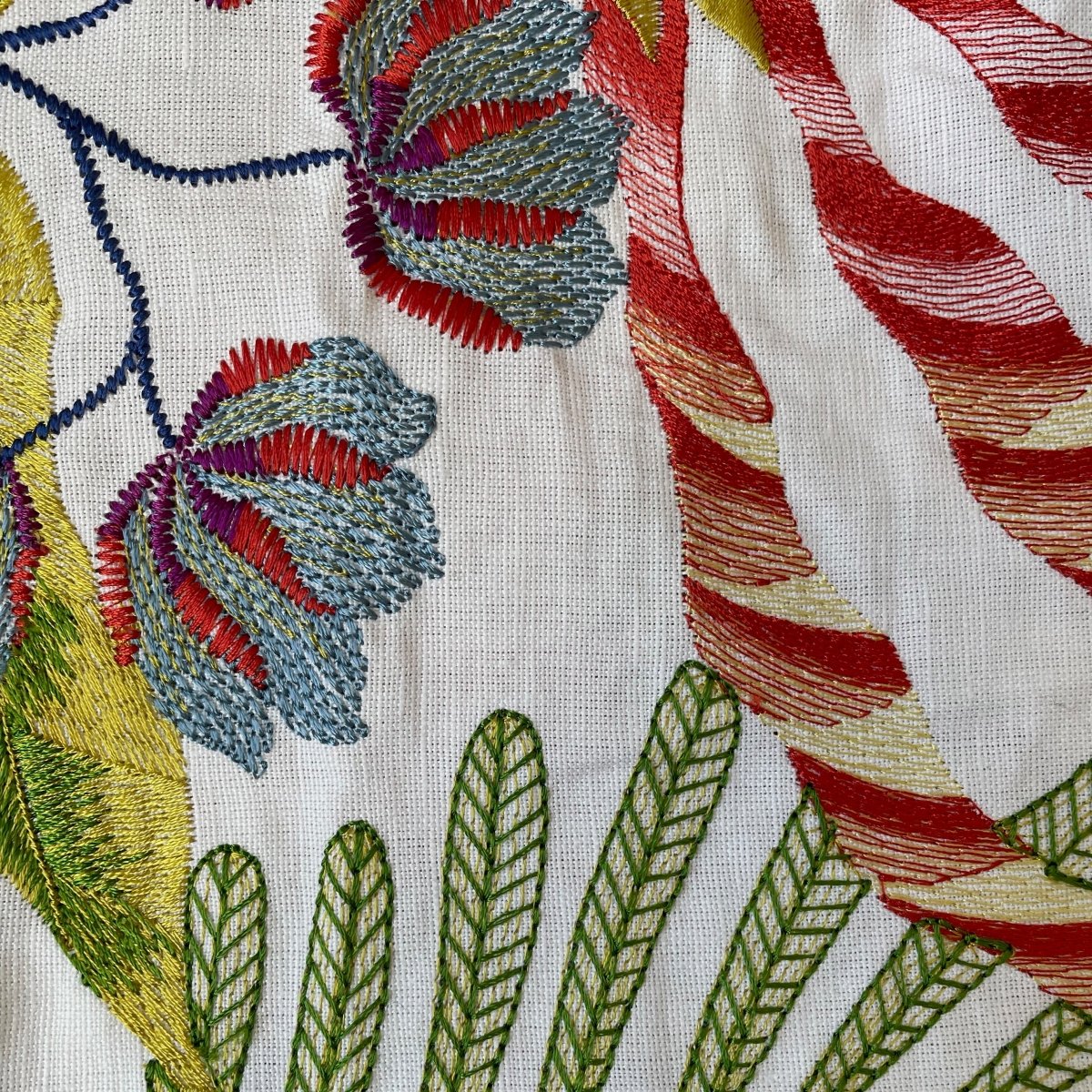 When it comes to the Cloud Forest White Duvet Covers by Ann Gish, it's hard to ignore the deep connection to nature it evokes. The design is inspired by biophilia, a term originating from the Greek word 'philia' meaning 'love of'. The vibrant embroidery perfectly captures the look of drenched foliage, just like in lush rainforests. Duvet Covers in Queen and King.