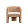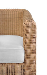 🔍 Key Features: Materials and Construction: Crafted from natural rattan woven into a warm, tonal barrel shape. The performance-grade ivory cushion offers comfort with stain-resistant ease.