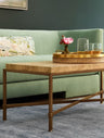 - Antique Brass Frame Coffee Table With Thick Top In Burl Wood.