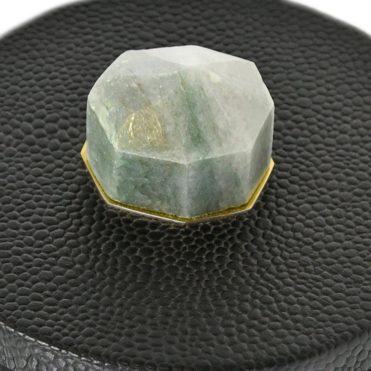 Worlds Away Marlene Round Black Faux Leather Container With Stone Handle. Green Anenturine Stone on top is beautiful and attractive, setting this container apart. The Marlene Round Black Faux Leather Container by Worlds Away combines sleek design with practical storage functionality. Crafted with a luxurious black faux leather exterior, this container offers a sophisticated alternative to traditional storage solutions while maintaining durability and easy maintenance. Its distinctive stone handle adds an unexpected natural element, providing both aesthetic appeal and effortless portability. Ideal for organizing small essentials or acting as a stylish catch-all, this container seamlessly integrates into modern and classic interiors, allowing you to keep your space tidy without sacrificing elegance.