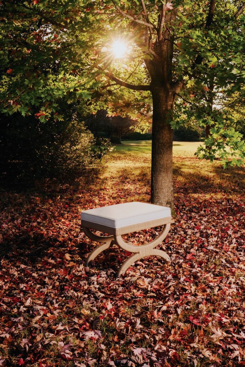 The Xanadu Stool by Worlds Away showcases a neoclassical design that artfully merges organic textures with contemporary style. Expertly handcrafted using natural rope, it features a crisp white performance linen cushion. Ideal as a singular accent or grouped, the Xanadu stool enhances both living spaces and bedroom footboards with its refined presence.