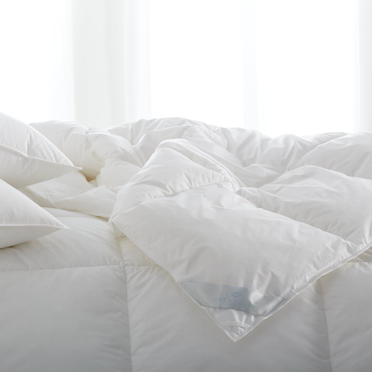 Bergen Down-Free Comforter by Scandia Home offers the ultimate luxury to those who enjoy the comfort of down but require a down-free environment. The Bergen Comforter is a down alternative made from Scandia's Supra-cluster microfiber that has been engineered to deliver all the comfort, loft, and luxury that one would expect from highest grade natural Scandia down comforter. Comforter has lustrous 300 thread-count cotton cambric ticking and beautifully double-stitched piped edges. It has sewn-through box stitching that alleviates cold spots.