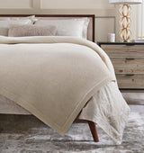 Talida Wool Blanket by Sferra makes a statement in any room. Luxurious blanket is crafted out of the finest merino wool. It is lightweight but cozy, and holds warmth. This wool blanket features a traditional waffle weave and two tonal shades of delft and navy blue, it's a great layering piece that adds texture and depth to any bed and room.