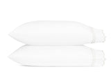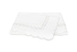 Matouk Classic Chain Scallop White Bedding. Enrich your bedroom with the classic, chic sophistication of Matouk's updated Chain Scallop. Woven with 600 thread count Milano Percale, this luxurious bedding is finished with a perfectly balanced scallop edge. No detail is overlooked in the timeless design with its intricate and beautiful chain and scallop embroidery. This Egyptian cotton percale is available in duvet covers, pillow shams, sheets and pillowcases and can be customized in your desired colors. Sleep in style with Matouk!