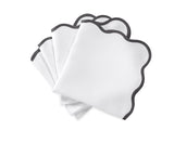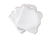The Scallop Edge Napkin from Matouk's Casual Couture Table Collection. A perfect playful napkin for a tradition or a contemporary table. This elegant collection of table linens can be used every day or for special occasions. The base fabric is 100% linen and finished with a contrasting colored border.