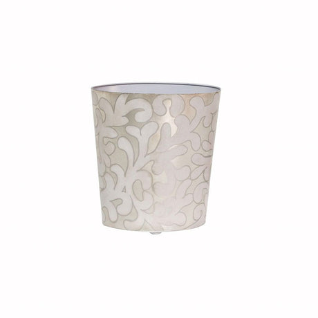 White Glass Wastebasket with Crosshatch Detail