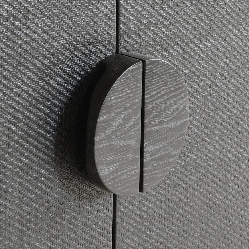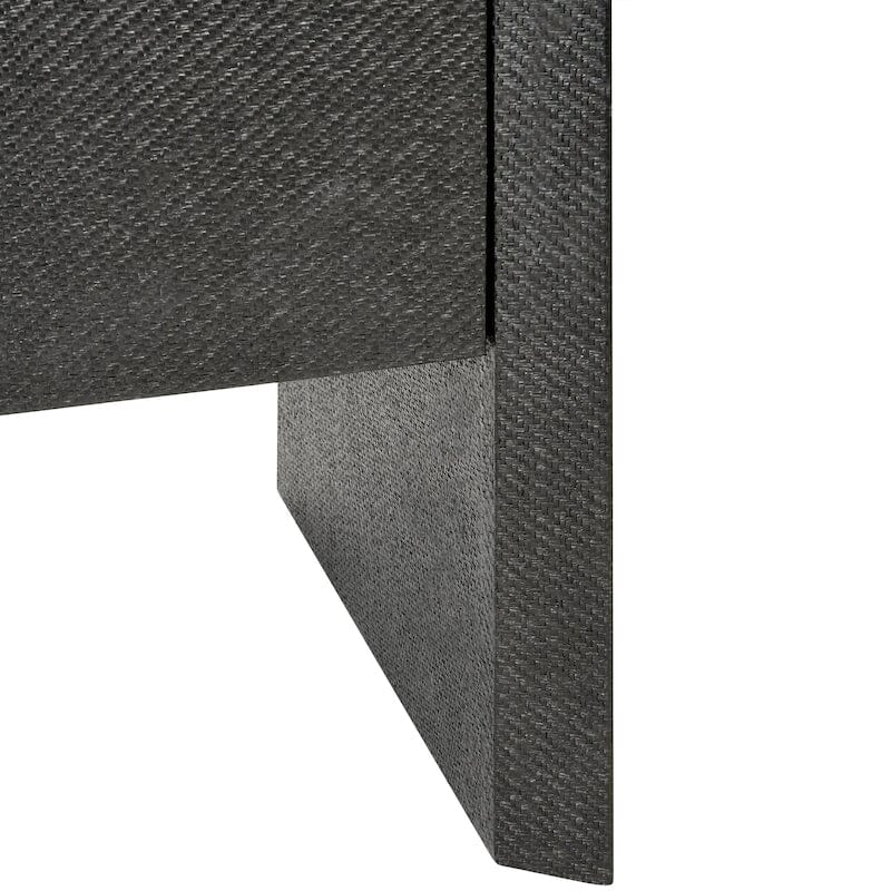 Colt Black 4-Door Buffet Table by Worlds Away offers style and practicality. Made from high-quality black painted grasscloth and classic black oak handles, it has four doors for ample storage. Its sophisticated design makes it perfect for any contemporary dining room. Wonderful when styled as an entryway console.