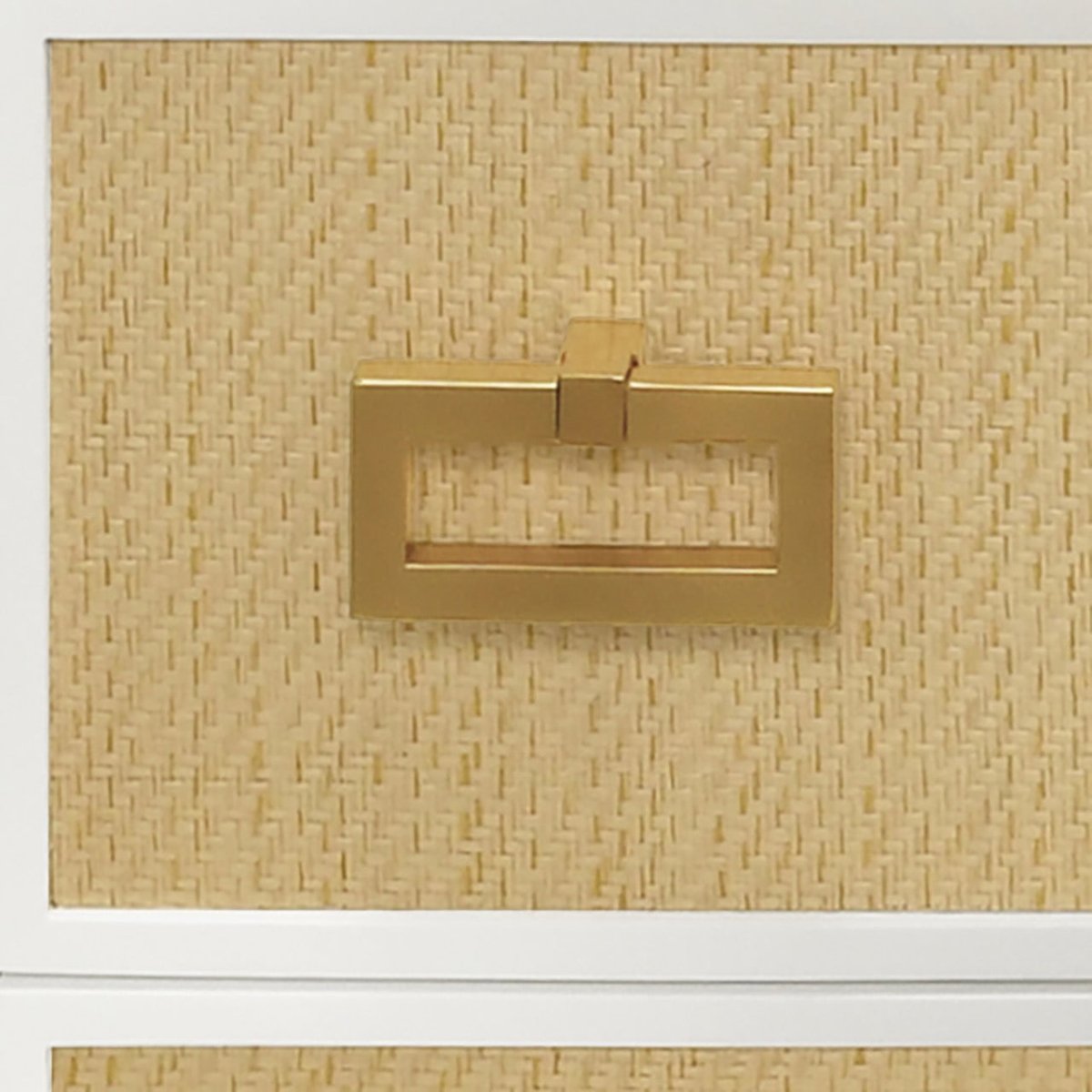 The Radley Natural Side Table by Worlds Away combines understated elegance with practical storage. This three-drawer nightstand features a crisp matte white lacquer frame contrasted by natural grasscloth drawer fronts, creating visual interest through texture and material contrast. Measuring 29"H x 30"W x 18"D, it adapts seamlessly to bedrooms, living rooms, or any space requiring accessible storage. Handcrafted in Vietnam, the piece delivers both functional organization and refined design sensibility, making it an excellent choice for those seeking furniture that balances form and purpose. Whether used as a side table or a nightstand, the Radley will be a staple in your home for years to come.