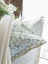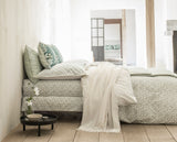 Feuilles d'Ikat Bedding by Alexandre Turpault is modern, refreshing and sophisticated. Duvet, sheets, shams and cases feature an all-over floral pattern inspired by Art Déco leaf patterns and ikat. The beautiful and unique pattern is printed on fresh cotton percale in shades of light green and grey with hints of yellow and dark blue.