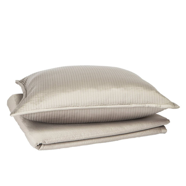 Linea Taupe Coverlet Set by Ann Gish. You'll love this taupe toned machine washable set that's a lovely neutral color. Fine linens coverlets with pillow shams included. Inserts sold separately. Bed covers and pillow shams for everyday use with a lovely sheen that adds extra style. This quilted coverlet set relies on elegance that is easy and pleasurable to live with, the taupe color goes with both grey and tan interiors. Machine washable. A true marriage of form and function for luxury bedding. It is a luxury bed cover created for and enjoyed by the senses. You'll love this taupe bedding.