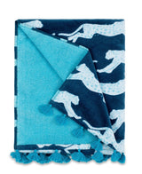 Leaping Leopard Beach Towels by Matouk Schumacher. This plush cotton velour towel stars Schumacher’s hand-drawn leaping leopards and is finished with a contrast tassel trim. Colors you'll love. Whimsy, Fun, Function come together in this inspired Pool Towel.