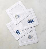 Impress your guests with these Blue & Silver Holiday Cocktail Napkins by Sferra. The cocktail napkins are made from pure, crisp-white European-woven linen. These napkins each feature delicately stitched adornments surrounded by a sophisticated hemstitched border.