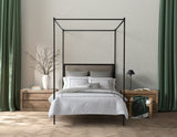 Matouk's Louise Bedding in crisp percale. Luxuriously smooth, crisp cotton. Styling is an updated collection of Duvet Covers, Bed Sheets, Pillow Shams and Pillowcases made from 100% Giza Percale Cotton. The trim detail is a lovely sateen appliqué banding and finished with a clean, corded edge. Clean no-flange design. Incredibly wonderfuly hand feel, beautifully clean look and makes for an excellent sleep experience.