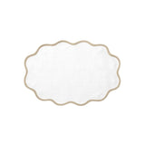 Scallop Oval Placemats and Napkins are a playful option for a contemporary table. This elegant collection of table linens can be used every day or for special occasions. Table placemats and napkins are white with a contrasting colored border. They can be paired with any of the Matouk placemats and napkins from the Casual Couture Collection for a table setting that is uniquely your own.