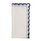 Arches Napkin in White & Blue Set of 4 by Kim Seybert. The Arches linen napkin offers a contemporary update to a standard white linen napkin, featuring a thick embroidered geometric edge accented by delicate pick-stitching. This harmonious border beautifully frames the entire napkin. Navy embroidery stands out beautifully against the crisp white linen, creating a striking contrast and balance that enhances the napkin's charm. Its versatile design seamlessly transitions from formal dining to more casual settings. Materials: 100% Linen