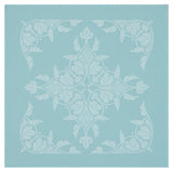 Syracuse Table Linens by Le Jacquard Francais. Modern and stylish tablecloths, napkins and runners with exotic floral designs on a cool aqua blue. The organic pattern on the soft blue fabric creates an elegant and relaxing look for any table.