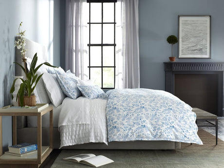 Matouk Alexandra Bedding. Lulu DK Collaboration for beautiful luxury printed bed linens. Based on a vintage Parisian find Alexandra combines a bold approach to scale with fresh, livable colors. It is a soft floral print on white 500 thread count Luca Egyptian cotton percale. The style creates a playful look for the whole bed, or it can be used more sparingly as a beautiful accent on shams or sheeting.