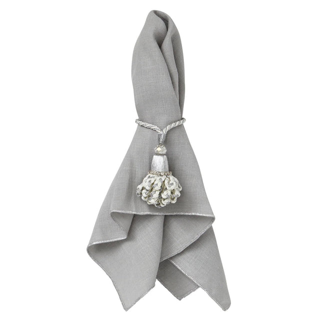 These Bowery Grey & Silver Napkins by Mode Living have a minimalist design that will easily complement any contemporary or classic tablescape. The grey cloth napkins feature a silver metallic border that is subtle yet eye-catching. These neutral dinner napkins are perfect for mixing and matching with patterned table linens.