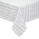 Cannes Table Linens by Mode Living. Tablecloths, table runners, napkins and placemats with a contemporary design and neutral colors. The sophisticated lightweight and slightly sheer table linens have silver foil a silver foil print that gives them a bit of drama and glam.