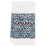 These Cuzco Blue & Gray Napkins by Mode Living add a fun and bold accent to any table. The cloth napkins feature bands of a chic ethnic pattern woven in neutral blue and grey tones on a white background. Great for a dressy dinner or a simple luncheon.