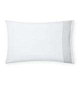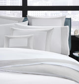 Casida Bedding by Sferra is a subtle in color, yet bold in design. With large blocks of white contrasted by wide bands of color and reversing to solid Sateen, this bedding is a great modern statement.