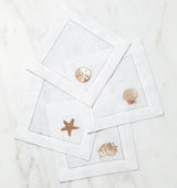 Beachcomber Cocktail Napkins by Sferra feature four delightful sandy-hued seashell embroideries. These beach themed napkins are sure to be a great conversation starter. Each collection includes: Sand Dollar, Starfish, Scallop and Whelk.