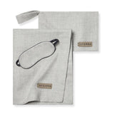 Travel in style with the luxurious Viaggio Travel Set from Sferra. This luxury travel kit includes an eye mask, throw and zippered pouch with a handle. The items are woven of baby alpaca wool and lined in satin. Viaggio makes the perfect gift for the jet setter. Available in 3 colors: Grey, Mocha and Smoke.