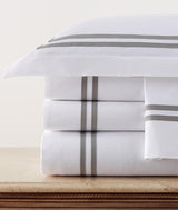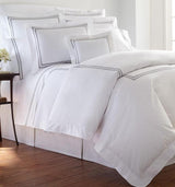 Crisp and tailored, Brendon II Bedding by Legacy Home is perfect for creating a classic luxury hotel look and feel. The duvet cover, sheets, shams, cases, bed skirt and coverlet feature a classic design with two rows of contrasting tape. The base cotton percale fabric is available in White and Ivory with over 50 tape trim options.