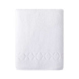 These Nature Blanc Bath Towels by Yves Delorme are designed with an elegant and subtle contemporary pattern. The bath sheet, hand towel, bath towel, guest towel and bath mat are made from soft and absorbent organic cotton. These white bath towels feature a border of pretty stylized leaves on one end. This collection of eco-friendly terry bath towels is simple and versatile; these terry cotton bath towels will easily complement any luxury bath with traditional or contemporary decor styles.