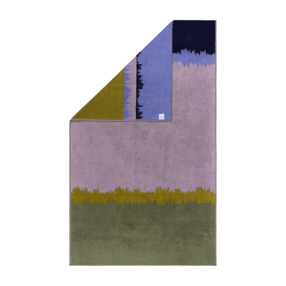 Brume Towels by Yves Delorme. Multicolored jacquard, simple hem top and bottom finish. 100% organic cotton, 470 gsm. Made in France. Bath Sheet 35” × 59” and hand Towel × 22” × 39” .