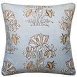 Lily Flower Spa Blue Decorative Pillow by Ryan Studio. This beautiful floral throw pillow features soft painted flowers on a solid light blue background. The calming multicolored blooms make this a perfect summer accent for any space. Sits well among abstract prints or neutral solids.