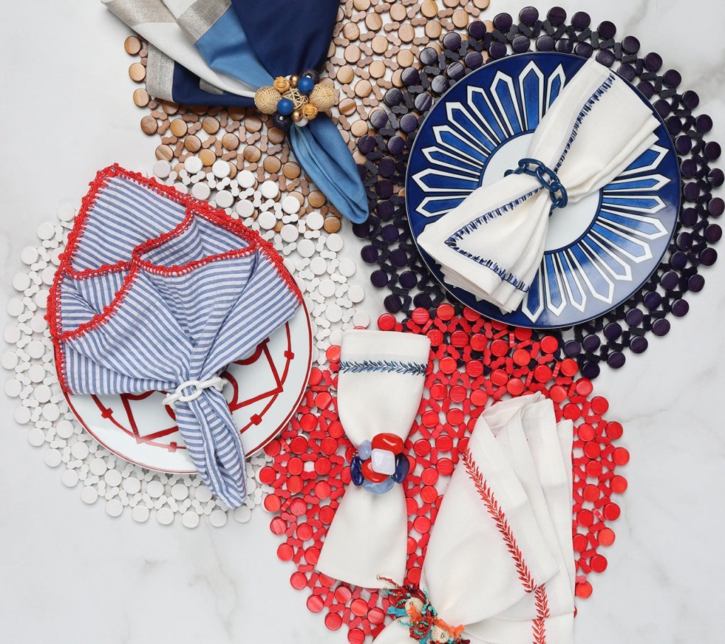 Round Bamboo Placemat in Coral Set of 4 by Kim Seybert. Set a beautiful table with Kim Seybert's versatile Round Bamboo Placemat in Coral. This pretty placemat is perfect for outdoor table decorations and can be used for casual table settings to more formal tablescapes. Materials: 100% Bamboo Beads