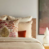 Arcadia Sunset Decorative Pillows by Ann Gish. These luxurious decorative pillows feature a colorful contemporary botanical pattern embroidered on a neutral linen ground. This throw pillow is great for adding color, intriguing pattern and subtle texture to a space. Available in 2 sizes.